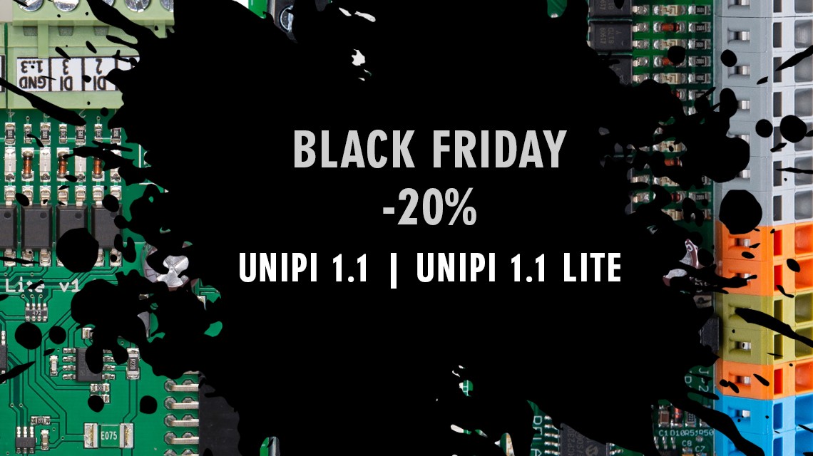 Plánujete nákup jednotek Unipi 1.1? Právě nyní máte vynikající příležitost. Od středy 24. listopadu až do úterý 30. listopadu můžete využít 20% slevu na jednotky Unipi 1.1 a Unipi 1.1 Lite. Sleva platí na samostatné jednotky i na sady.